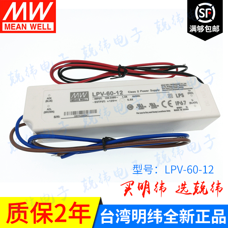 明纬 LPV-60-5/12/15/24/36/48 60W 塑壳IP6