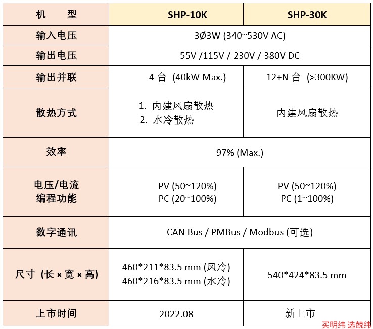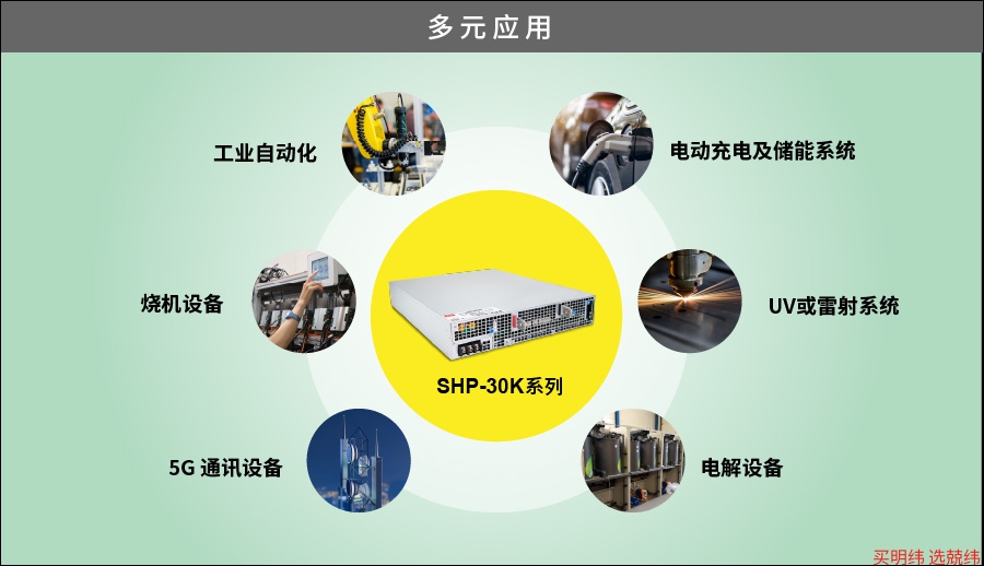 全球领先的标准电源制造商明纬公司正式推出备受全球广大客户期待的机箱式(2U Rack 型)超高功率标准电源SHP-30K系列。SHP-30K系列是目前全球最高功率的单体30KW AC/DC标准电源供应器,采用AC三相三线输入电压,提供四种标准机型,包括符合低电压55V (<60V SELV)和高电压(HVDC)输出的115V/230V/380V等。该系列产品特别适用于各类新能源与先进工业应用领域,如储能柜、储能墙、氢能、风能与太阳能、电动车快速充电系统等。此外,它还可用于工业IT大数据服务器与机房不断电UPS系统电源、5G基站和各类通信系统设备、工业电解设备、半导体生产设备以及UV雷射切割等应用。