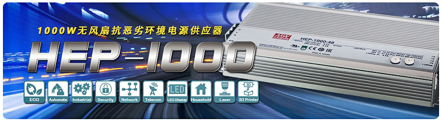 1000W 无风扇恶劣环境用明纬开关电源HEP-1000系列