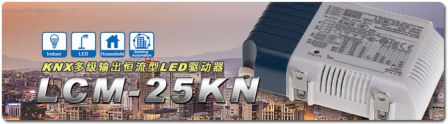 标准电源制造商—明纬,自2017年推出首款搭载KNX技术标准的标准电源后,致力于推广KNX楼宇自动化控制技术,并陆续推出符合国际标准的KNX相关产品。为持续提升产品齐全度,以满足终端客户与系统业者的使用需求。继在市场上首先推出符合KNX标准的LED灯具恒流驱动电源LCM-40/60KN,明纬接续推出LCM-25KN,让整个系列