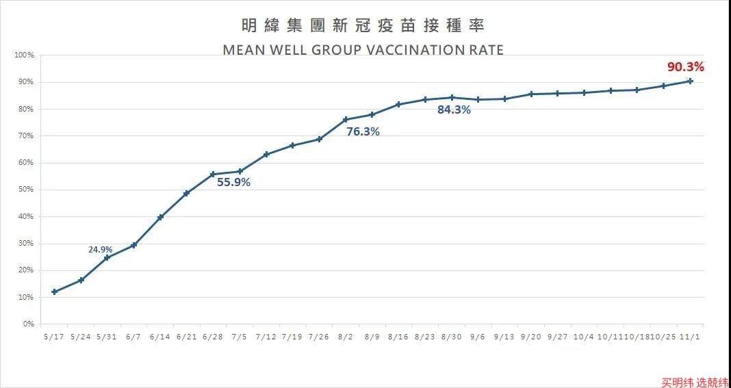 自2021/5/17起,明纬集团新冠疫苗接种率持续上升