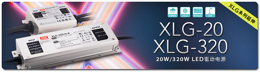 XLG系列包含: 20/ 25/ 50/ 75/ 100/ 150/ 200/ 240/ 320W