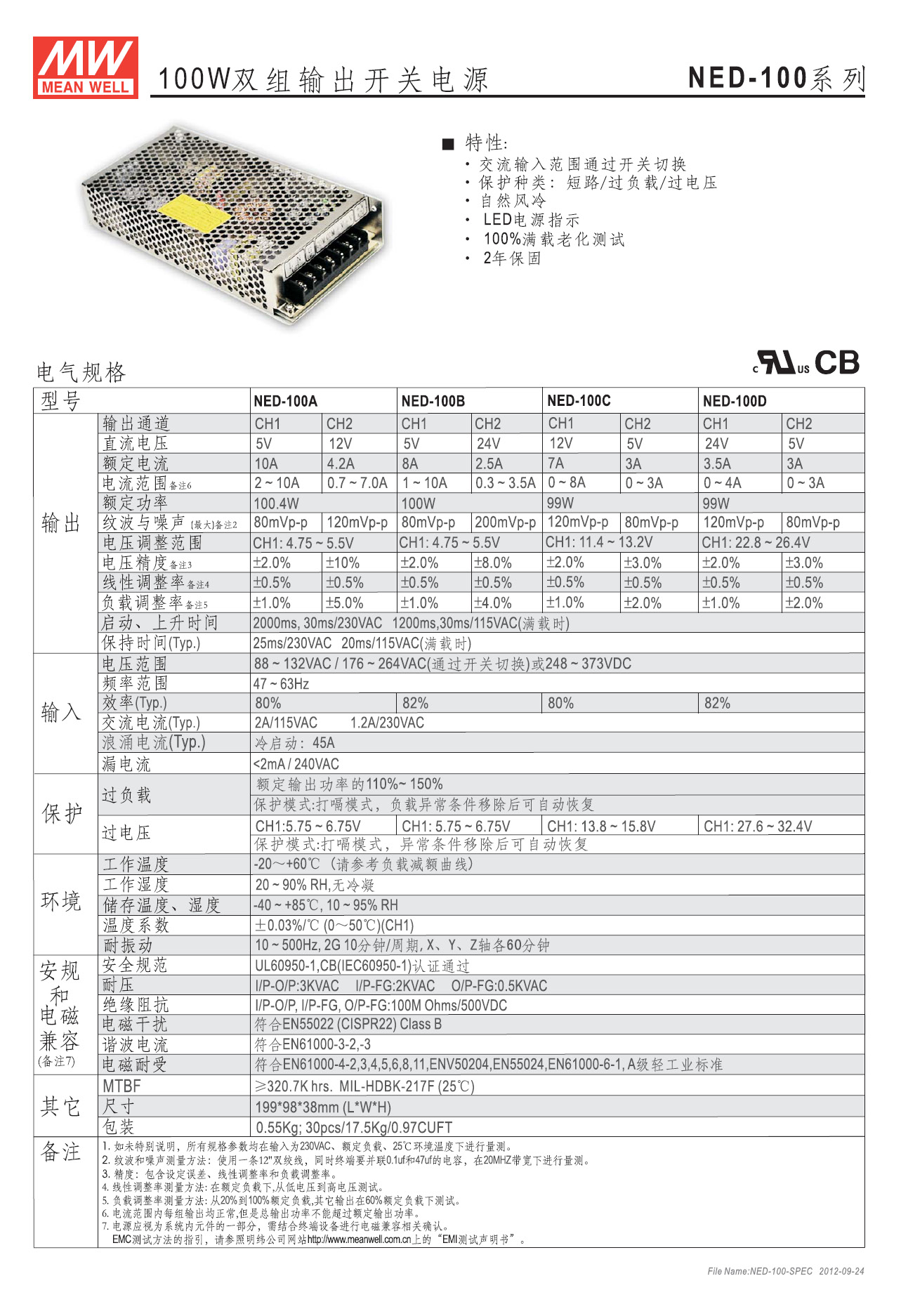 直流输出范围 12V,0~8.0A / 5V,0~3.0A