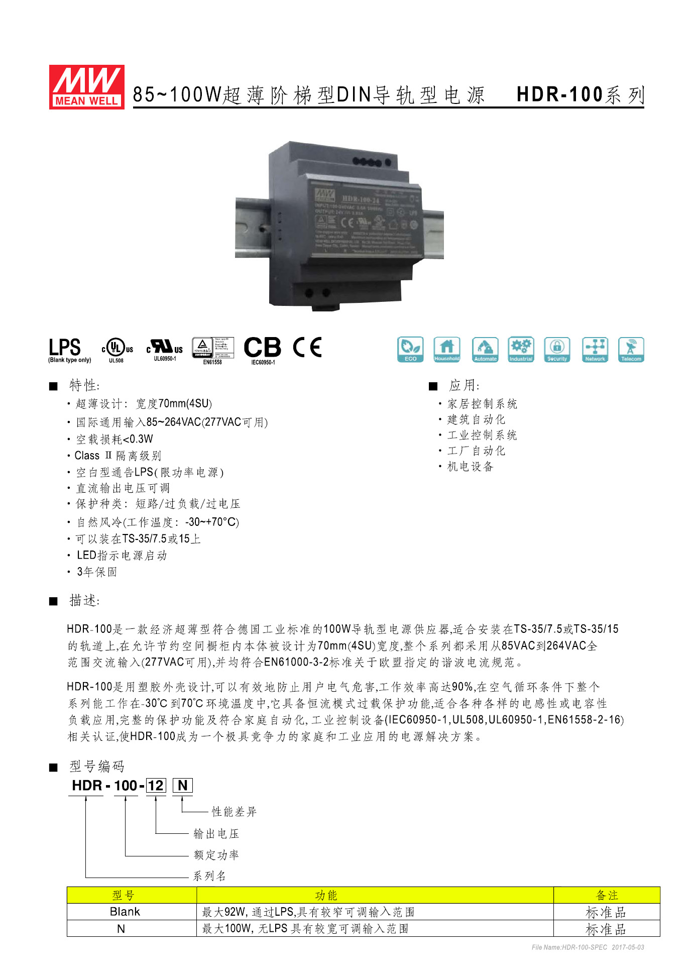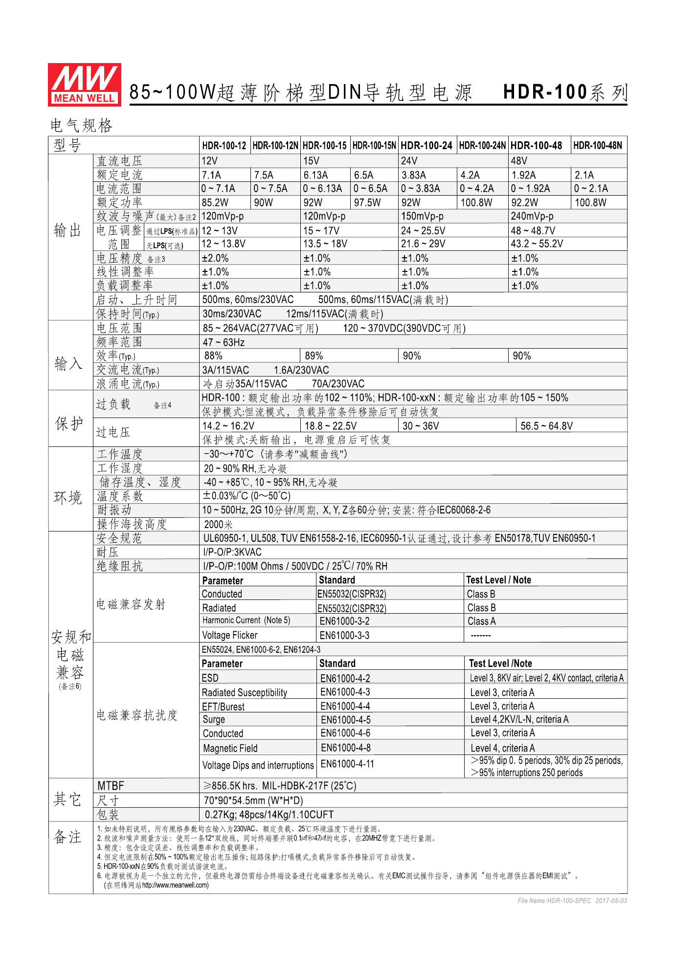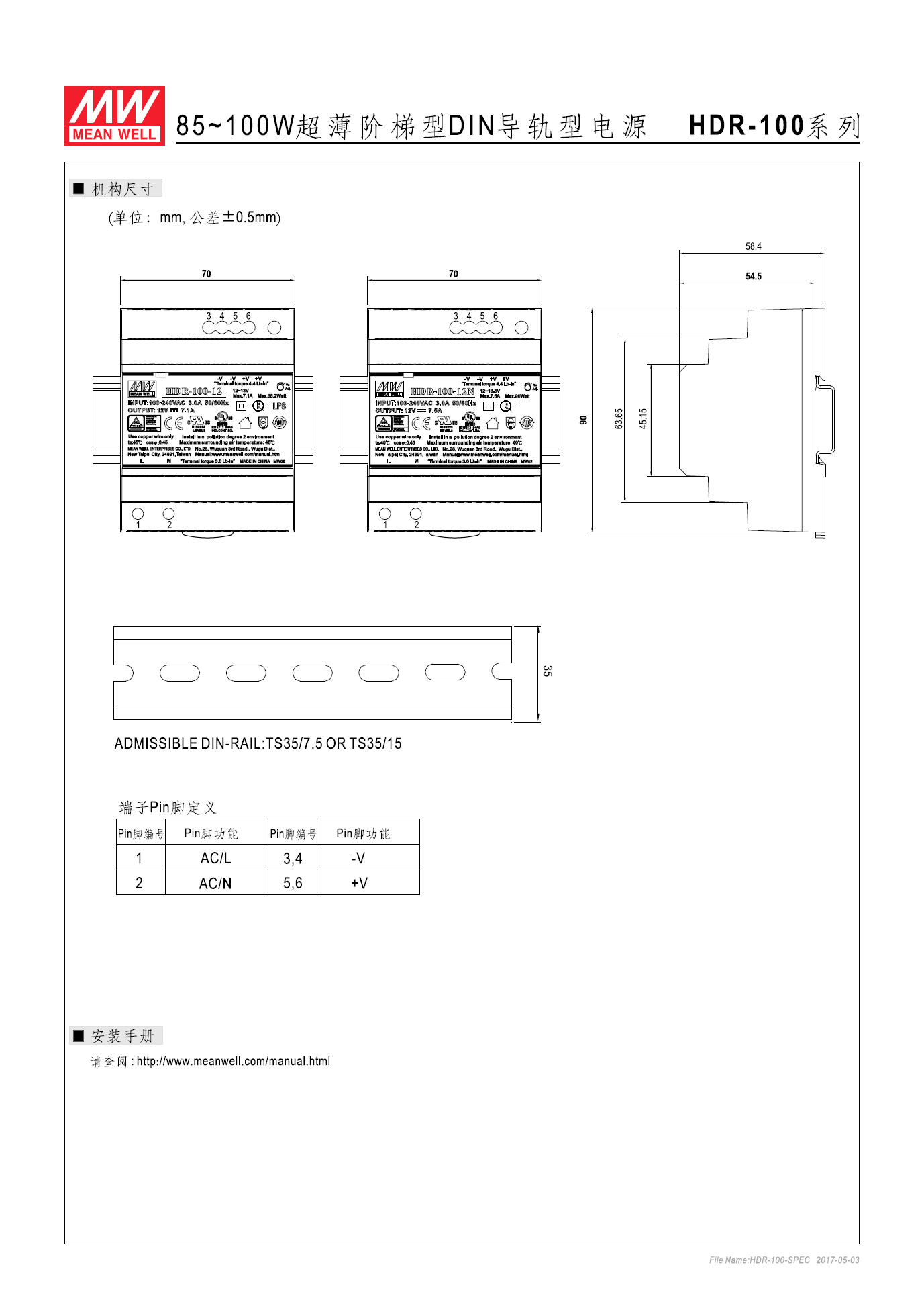 • DR-100-48N 台湾明纬100W直流48V导轨开关电源2.1A替代DR/MDR