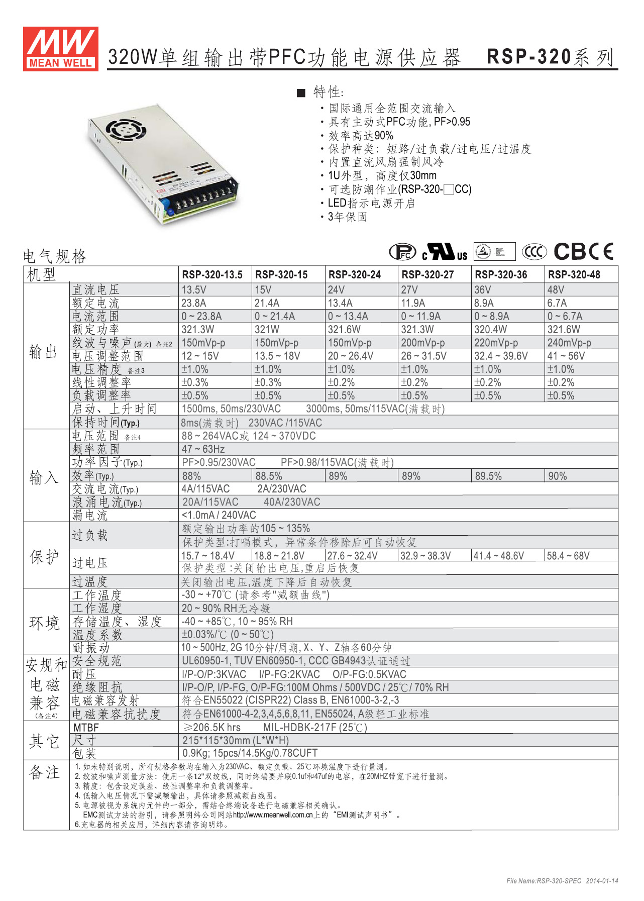 台湾明纬 RSP-320 ■ 主要特点