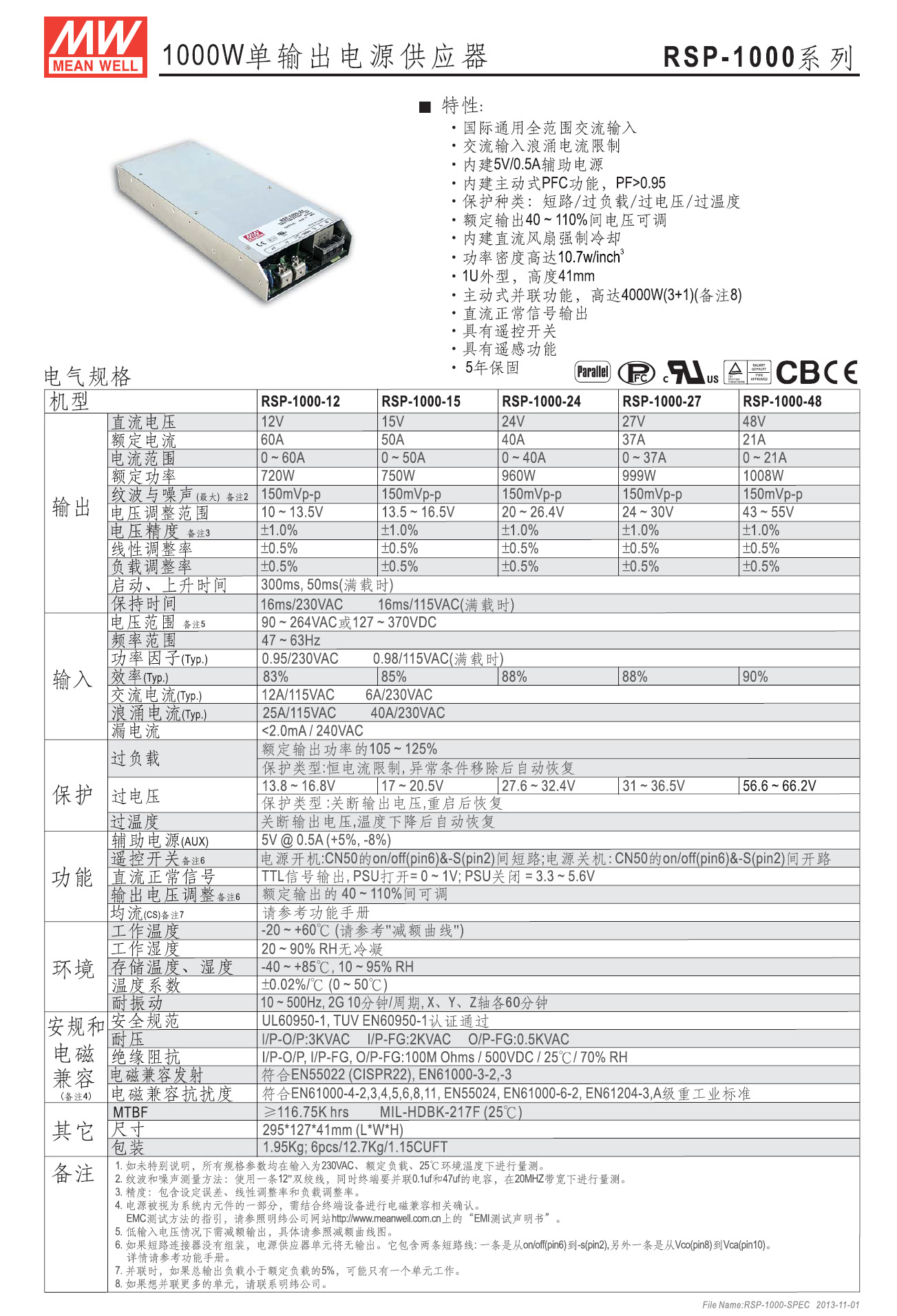 RSP-1000-12 RSP-1000-15 RSP-1000-24 RSP-1000-27 RSP-1000-48
