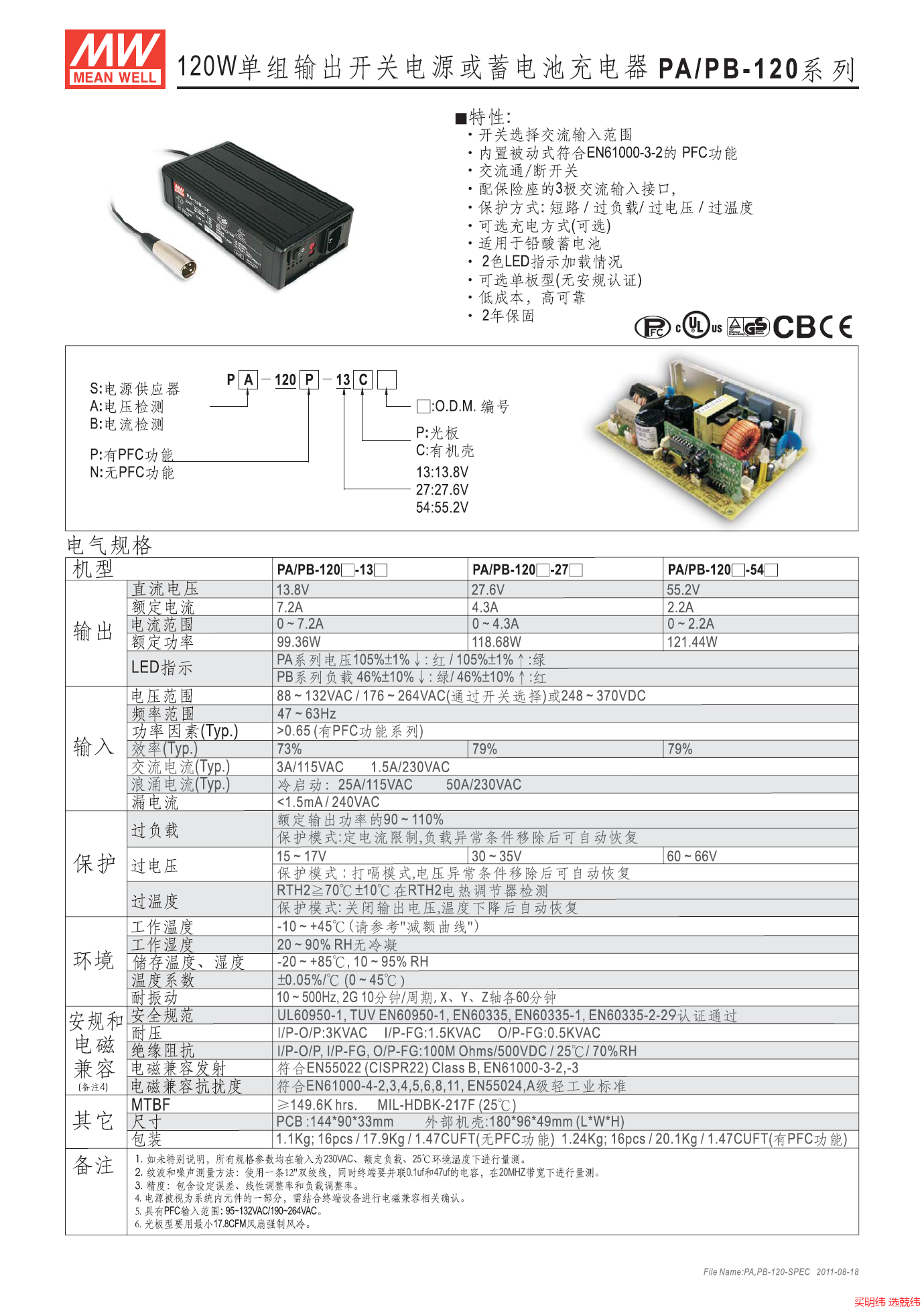 型号 PB-120N-13 PB-120P-13 PB-120N-27 PB-120P-27 PB-120N-54 PB-120P-54