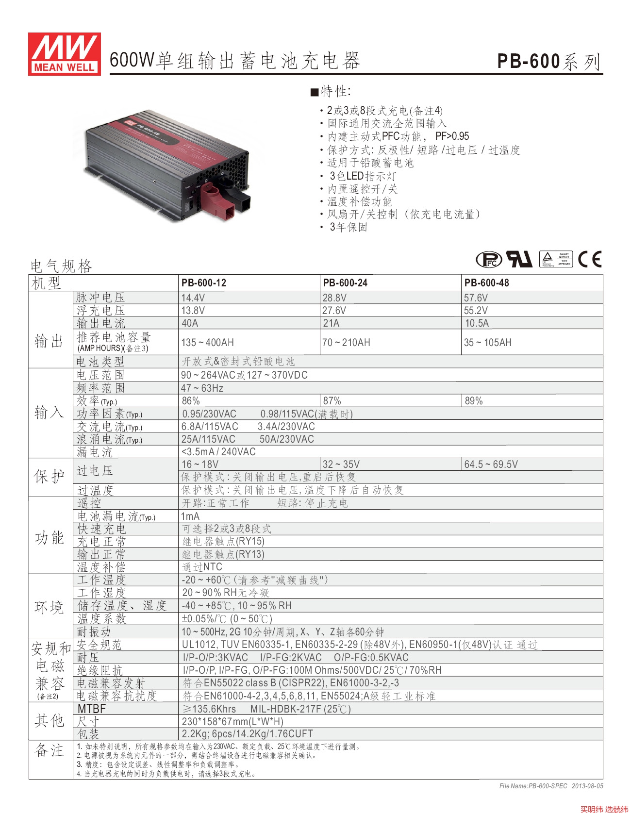 • PB-600-12/24/48 明纬600W蓄电池充电电源