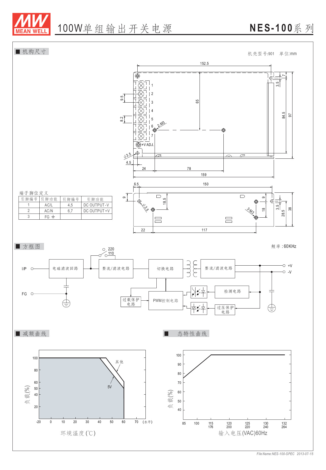 NES-100-48 ■ 主要特点全球通用全范围交流输入电压有短路保护/过载保护/过电压保护通过国际安规认证UL/CB/CCC通过中国国家安规认证 CCC认证自然通风冷却小尺寸、高功率密度高性价比、高可靠100%满载老化测试有安规认证的低功率电源解决方案台湾明纬品牌,广州工厂生产2年质保