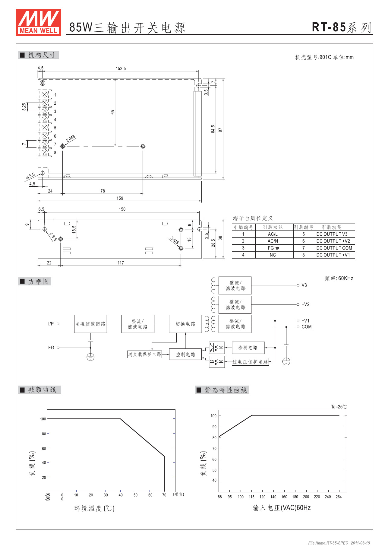 过载保护 过电流点在110%~150%,自动侦测自动复原