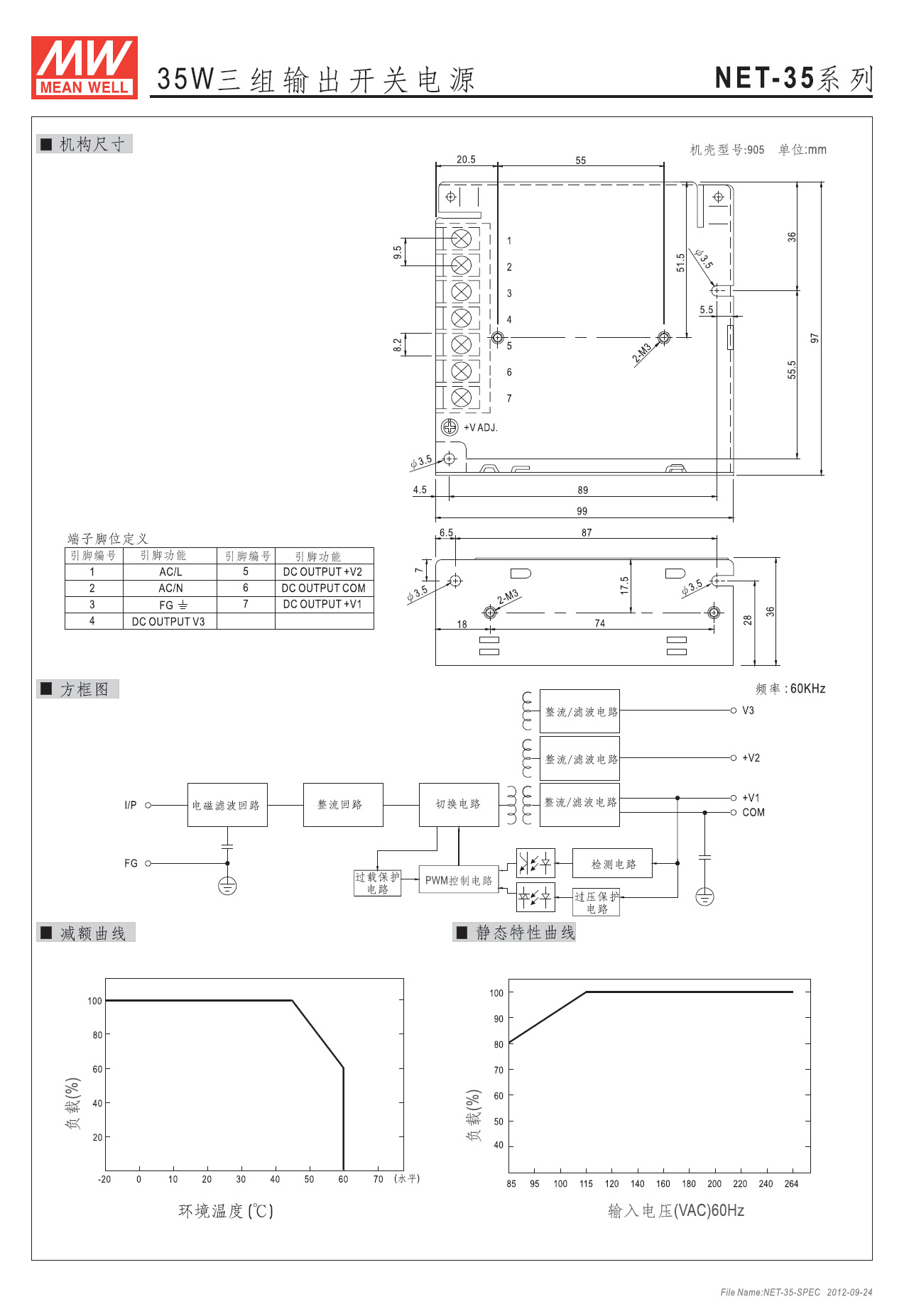 直流输出范围 5V,0.5~3.5A / 24V,0.1~1.0A / 12V,0.1~1.0A