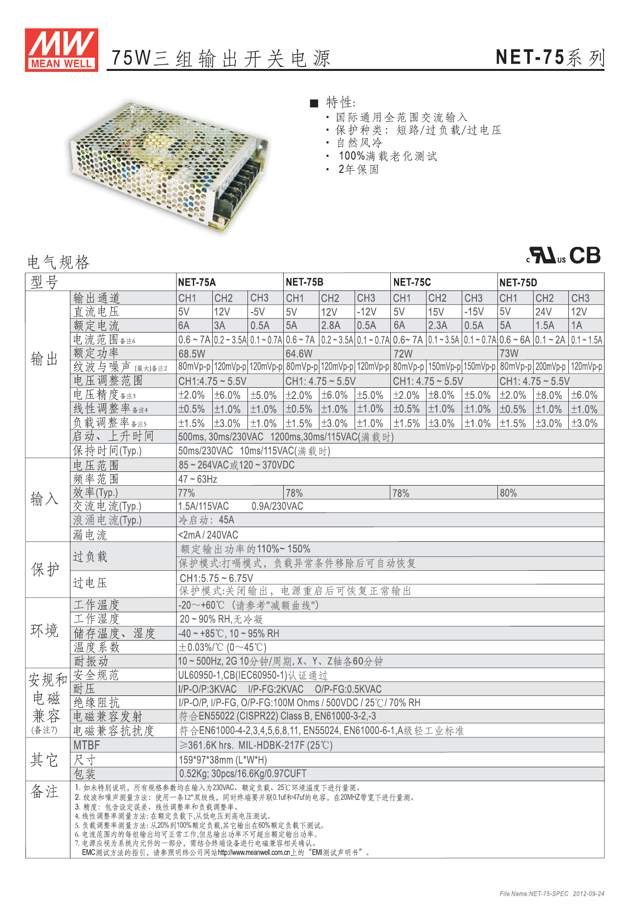 电磁兼容标准 发射:EN55022(CISPR22) class B, 谐波:EN61000-3-2,3