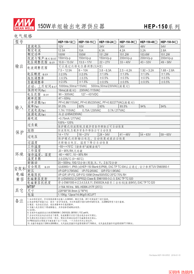 HEP-150-12A HEP-150-24A HEP-150-36A HEP-150-48A HEP-150-54A